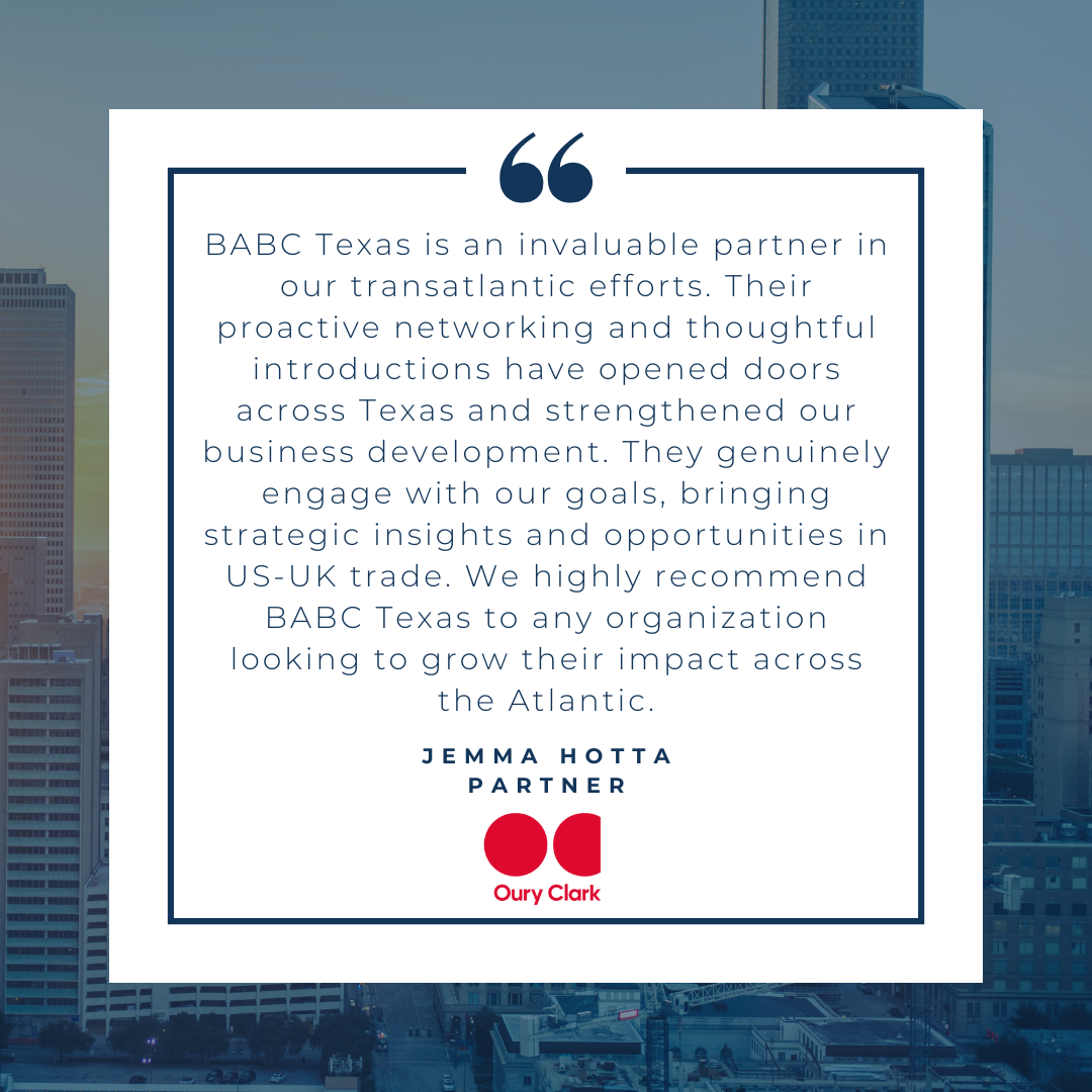 With Texas playing a vital role in the UK-US trade corridor, BABC Texas is uniquely positioned to support companies of all sizes through high-impact networking, access to decision-makers, and a strong community of internationally minded professionals.