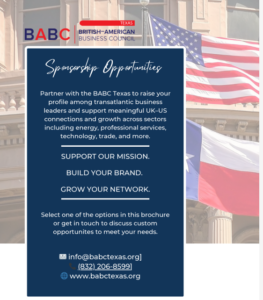 Sponsors play an important role in the development and growth of the British American Business Council Texas (BABC Texas).